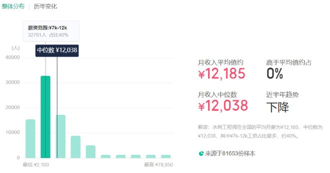 据网上的数据显示,水利工程师的平均月薪达到了12185元/月,中位数为12038元/月。虽然应届生待遇一般在6k左右,但是随着技能和阅历的提升,工资会日渐上涨。