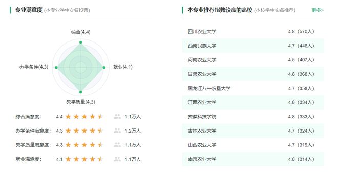 当然,名牌大学的该专业就业率比较高,工作去向也比较稳定。以中国农业大学为例,动物医学院的毕业生每年约有50%深造,其中约有40%的留在本校读研,另外10%出国深造。该校毕业生专业对口率高,就业率、签约率均达到100%。西北农林科技大学本科动物医学专业毕业生初次就业率均在90%以上,学生考研率大幅提升,近年来保持在45%以上。